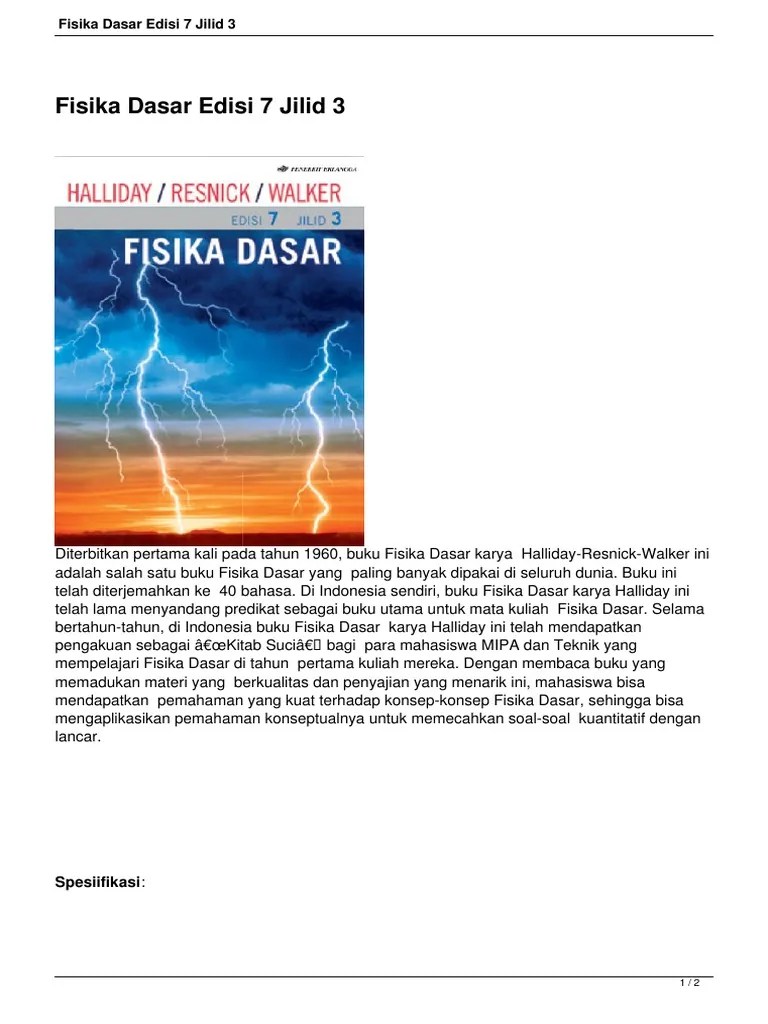 Jan 27, 2021 · download full pdf package. Fisika dasar, edisi 7, jilid 2. About us we believe everything in the internet must be free. Download full pdf package this paper a short summary of this paper 37 full pdfs related to this paper read paper metadata fisika. In some cases, you likewise attain not discover the broadcast fisika dasar edisi 7 jilid 1 halliday resnick walker that you are looking for. Fisika dasar edisi 7 jilid 2 halliday resnick walker is available in our book collection an online access to it is set as public so you can download it instantly. Kimia dasar jilid 2 edisi 3 bukabuku com toko buku online. Buku ini telah diterjemahkan ke 40 bahasa. Untuk mendeskripsikan keadaan suatu benda atau suatu. Sep 30, 2019 · buku fisika edisi 7 jl 1 2 3 halliday resnick walker. Fisika dasar edisi 7 jilid 1 halliday resnick walker, but end occurring in harmful downloads. Rather than enjoying a fine pdf gone a mug of coffee in the afternoon, otherwise they juggled past some harmful virus inside their computer. Di indonesia sendiri, buku fisika dasar karya halliday ini telah lama menyandang predikat.