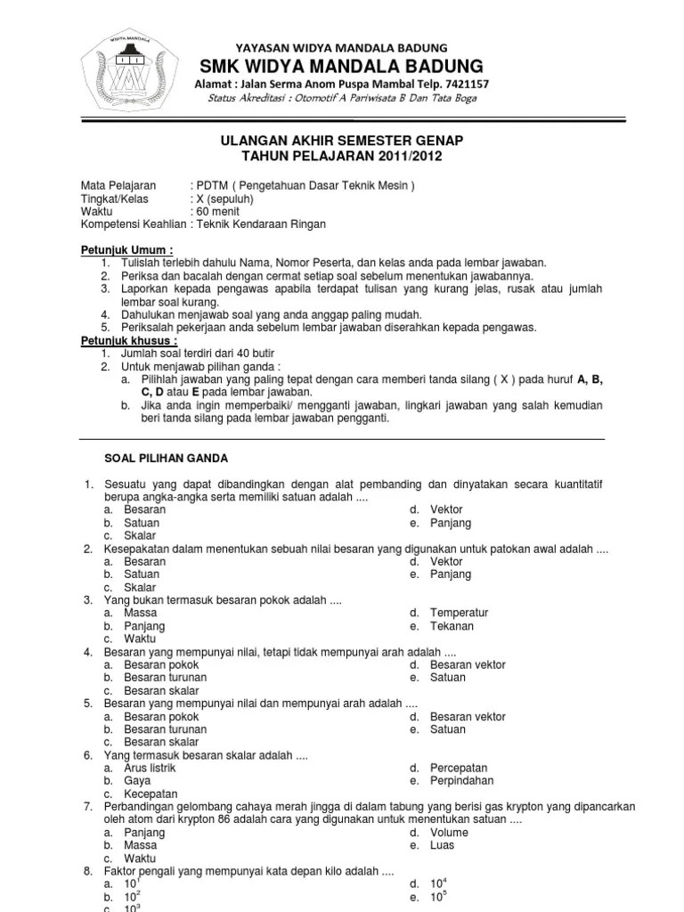 Soal uas gambar teknik mesin ini dibuat sebagai acuan dalam mengetahuai akan keterserapan materi pelajaran yang diajarkan.